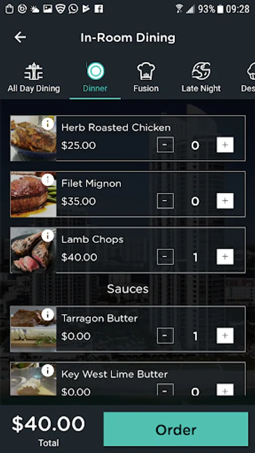 - Place beach/pool and in-room dining orders