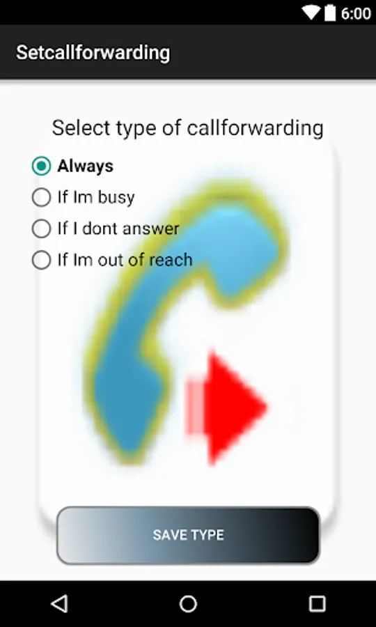 Now you can select the type of callforwarding: if you are busy or you don't answer or you don't .....