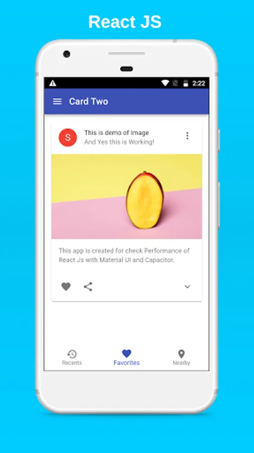 With this app developers can check the performance of Material UI with React JS and Capacitor. Developers can check how smooth React JS app runs on Android with use of Capacitor.