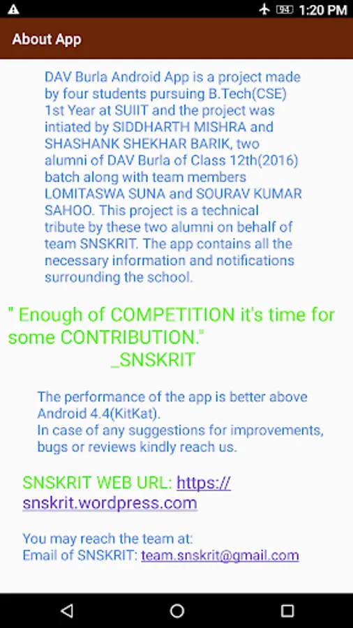 "DAV Burla" is the Official School App developed for the purpose to enable Digital Connectivity & Technology to the school via Android App.