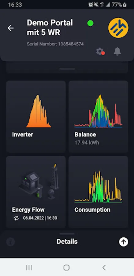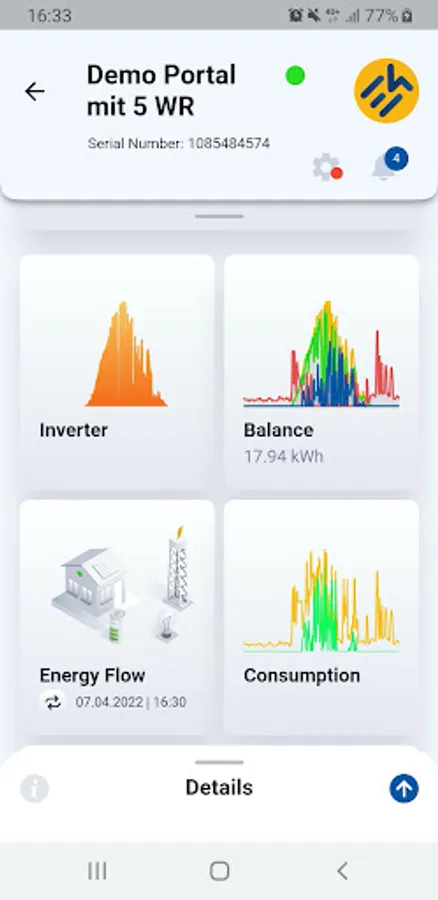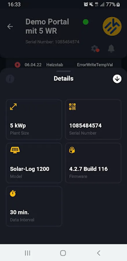 An energy manager in your pocket, enabling you to individually view and manage your plants at any time!