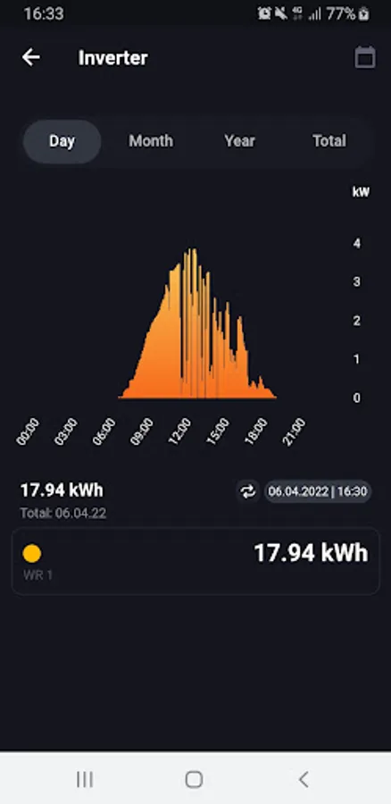 All current and historical data is simultaneously visible, allowing you to monitor an unlimited number of individual and connected components and plants. App display customisable between light and dark settings, with the option to chose your favourite accent colour.