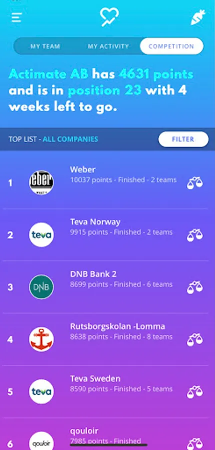Move and be doubly rewarded. Actimate offers a simple activity challenge for all of you at the company. It is adapted to the individual's ability. The whole team participates together in a challenge against other companies. It is a motivating tool for a healthy and active everyday life that inspires increased team spirit and rewards users with great offers.
