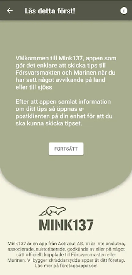 Mink137 is an unofficial initiative to help send tips to the Armed Forces or the Navy. The app asks for the information needed and then creates an email that you send from the email client in your phone. No information is shared with us who created the app.