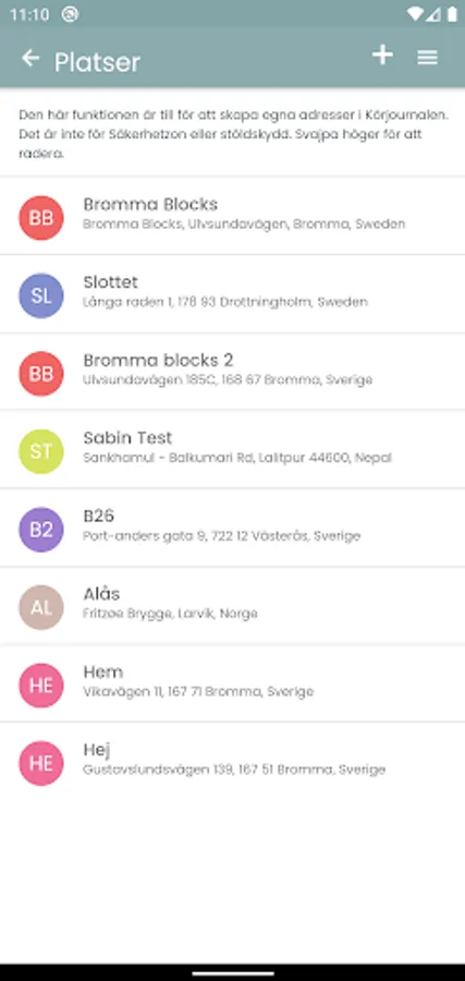 • Triplog: Automatic triplog approved by the Swedish Tax Agency
