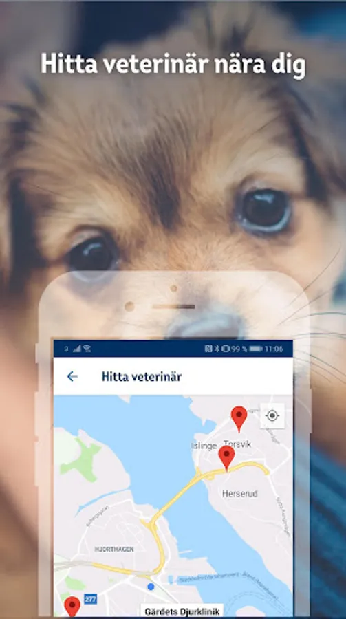 In order for you to quickly find the nearest clinic if your animal is damaged or ill, you will find clinics in your vicinity with the Find Clinic function. Here you can also see animal clinics all over Sweden.