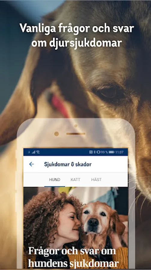 With Agria's app, the help is close to wherever you are. Get tips and advice in the app if your animal is injured or gets sick.
