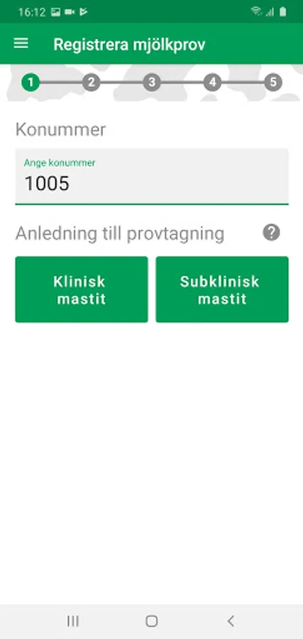 This application is used to enter information about the cow, scan the test tube for the milk sample taken from the cow, and connect the test tube with a culture plate where the sample is ironed.