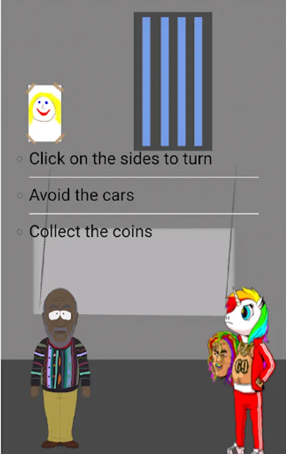 Avoid the cars by pressing the sides on the screeen. Collect the coins that apears to unlock new items.