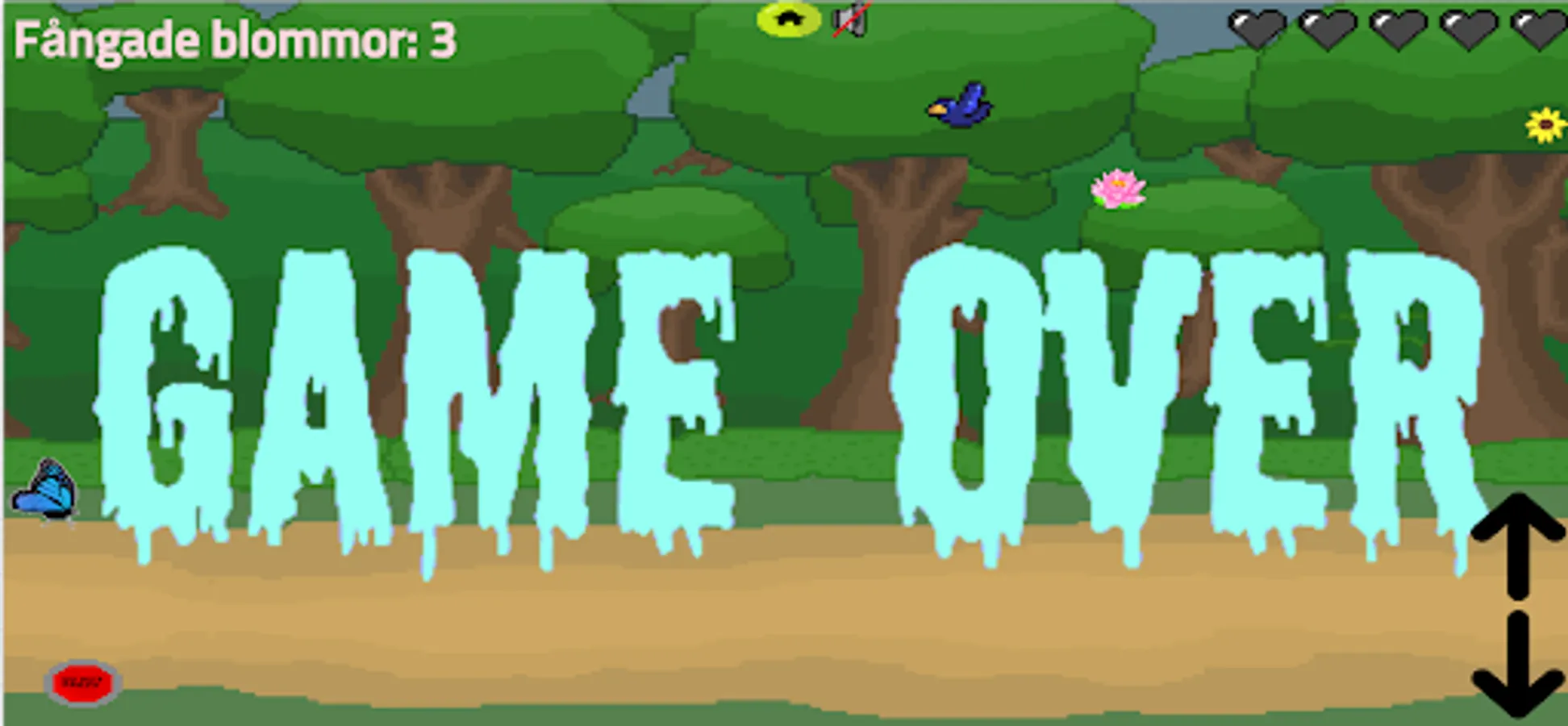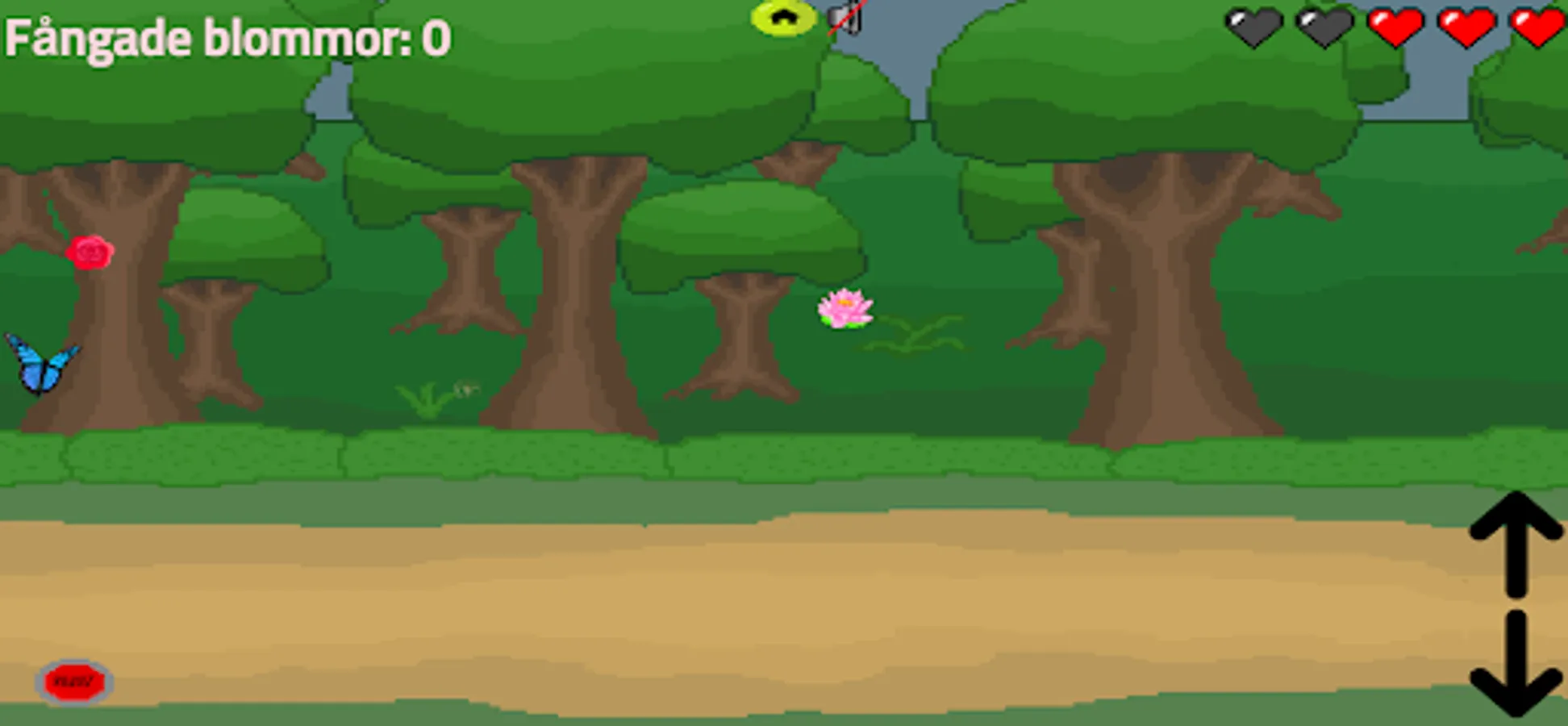 You are a butterfly that must catch as many score flowers as possible before it dies from the birds, i.e. hit three times. To help are life, shield and speed flowers.