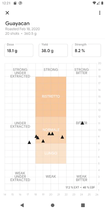 Now the fun begins, the automatic shot logger will take care of most of the work for you. It adds dose, saves yield starts and stops the timer. Technically you could leave your phone in your pocket and look at the extractions after hand.