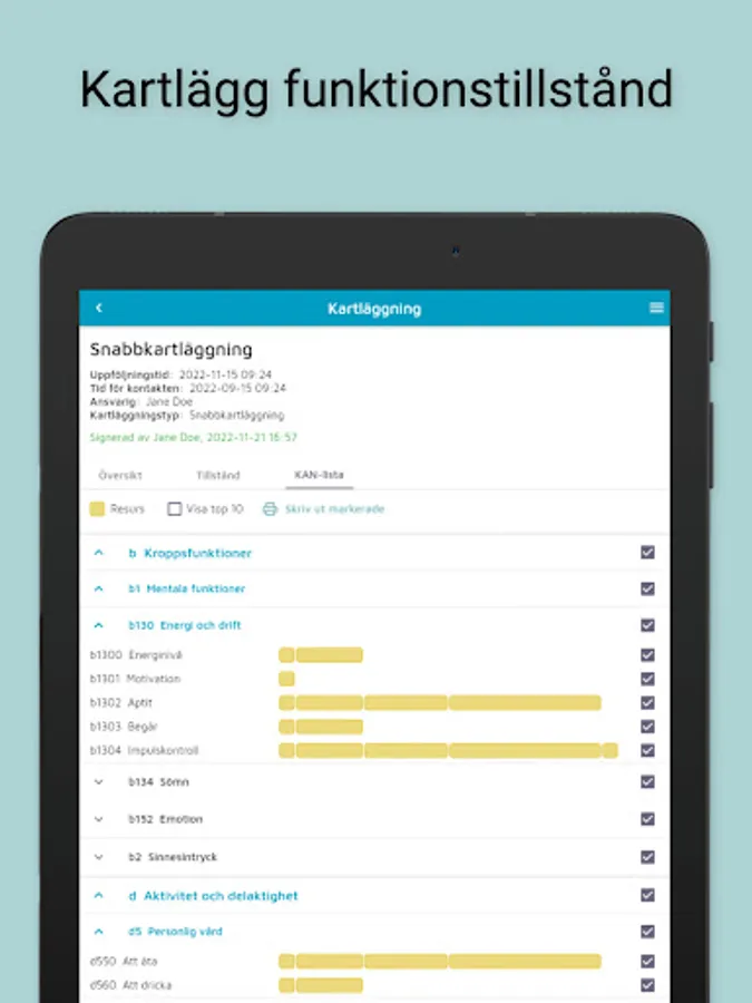 Person-centered documentation and follow-up - PDU - is a person-centered way of working that enables the follow-up of care/care efforts based on what is important to the individual. PDU is based on co-creation and makes the individual's resources visible and strengthens the person's self-esteem. PDU tailors interventions based on the person's needs and supports the creation of an implementation plan based on the national value base of the Social Services Act. With the help of the ICF (international classification for functional states, disabilities and health) a structured and follow-up documentation is created.