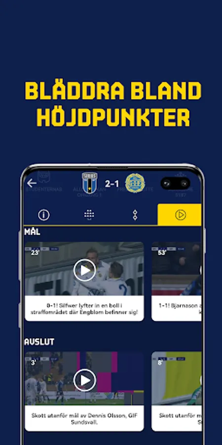 With the league's official app, you stay up-to-date on everything related to the Allsvenskan. In the app, you can buy tickets for the matches in the league, follow all matches via live updated match endings and take part in video clips from the matches after the round has been played. Here you can also take part in match-decisive clips live during the match, via the Highlights Plus service.