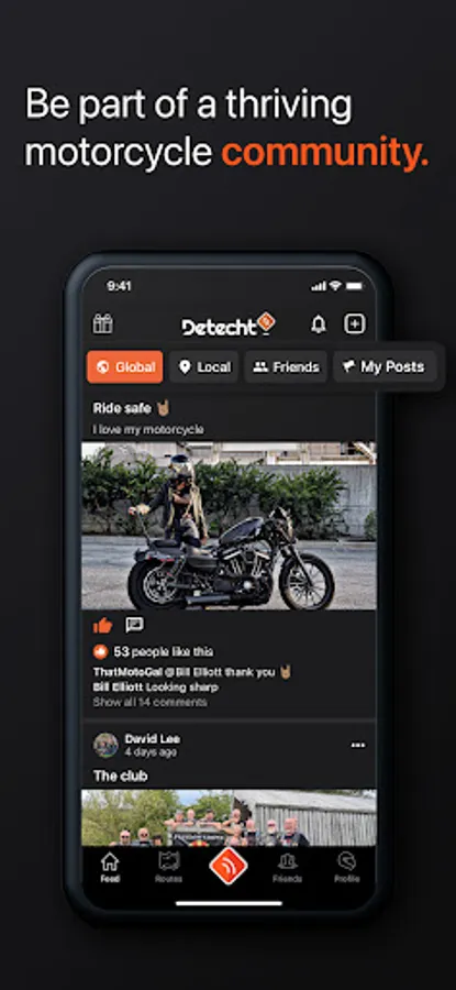 - Community: Find new riding buddies, plan and share rides together or compare stats. Join and experience the Detecht family with over 500 000 motorcyclists around the world