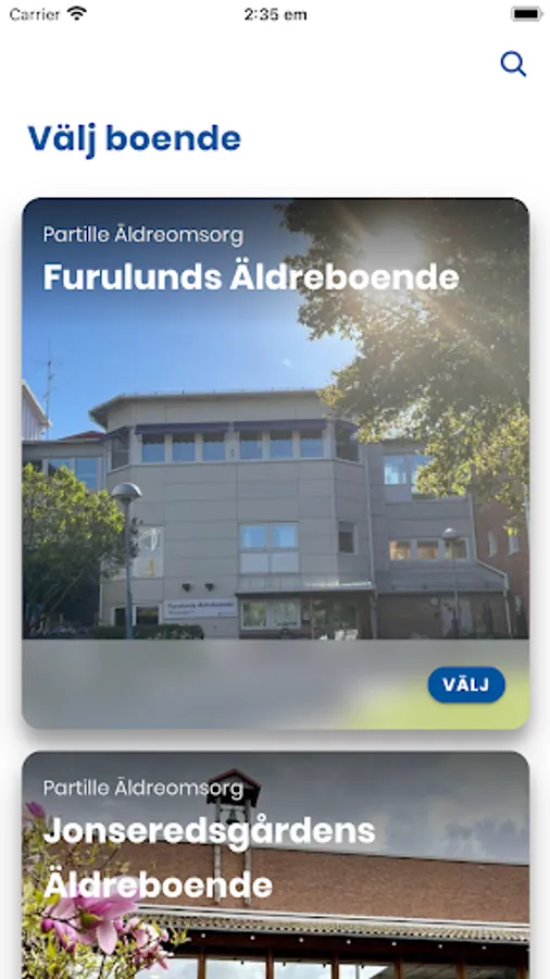 The app Partille elderly care contains information and services that are primarily aimed at relatives of people living in nursing homes in Partille municipality. You set up the desired accommodation and can easily take part in, for example, news, activity planning, menu and contact information. Much pleasure!