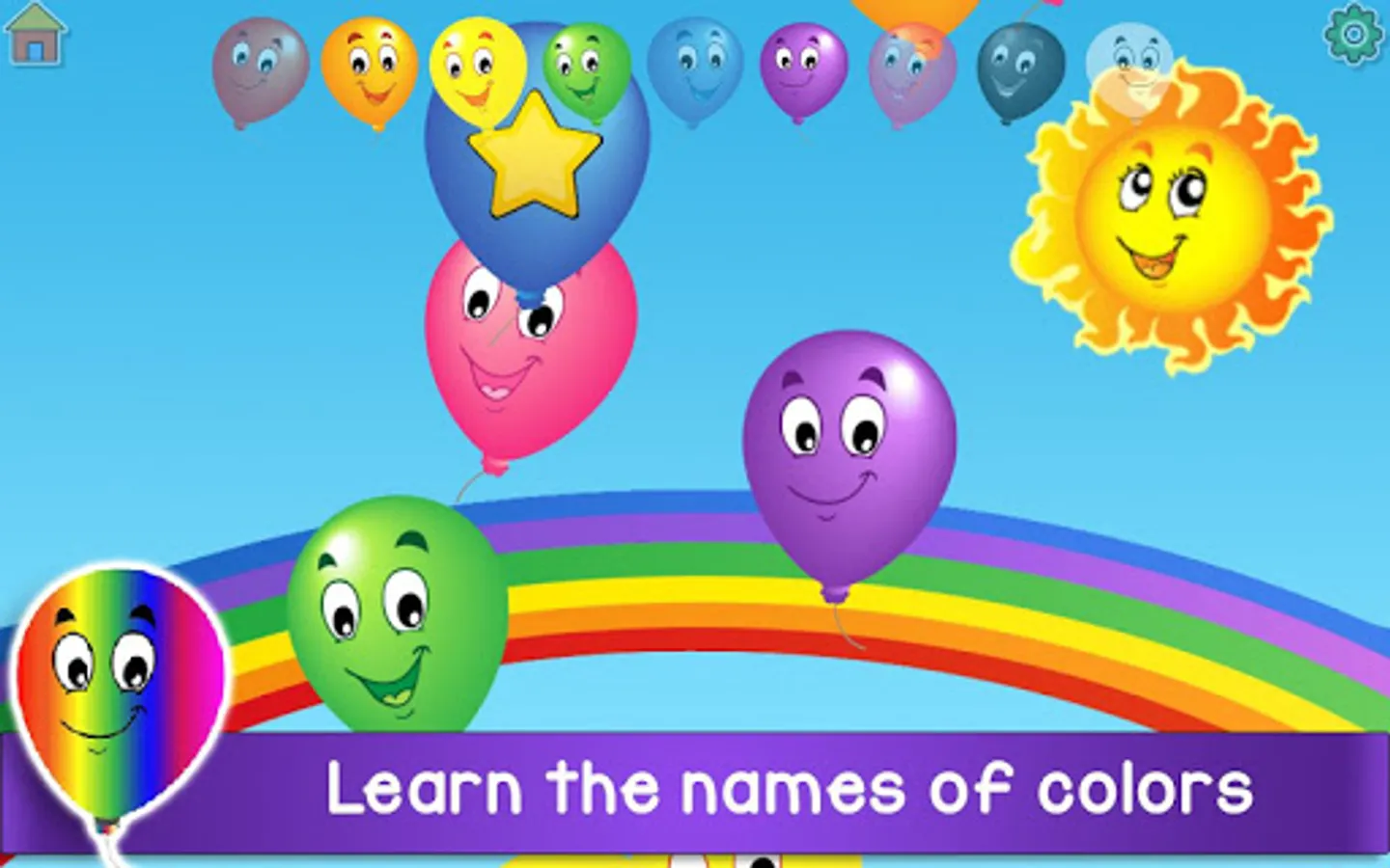 • Colors. Pop balloons of different colors, and hear the name of the color spoken out loud.