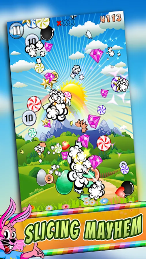 Simple controls, just swipe to slice, crack the eggs, chop the candy .. but watch out for bombs! Endless, untimed slice action - though be alert, the pace gets more frantic the farther you go.