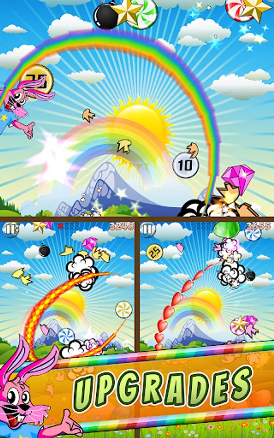 Inside the eggs you might any of several rewards: candy, coins, or even a rare gem or star! Collect all the rewards and goodies by swiping and slashing, then use them to acquire upgrades.