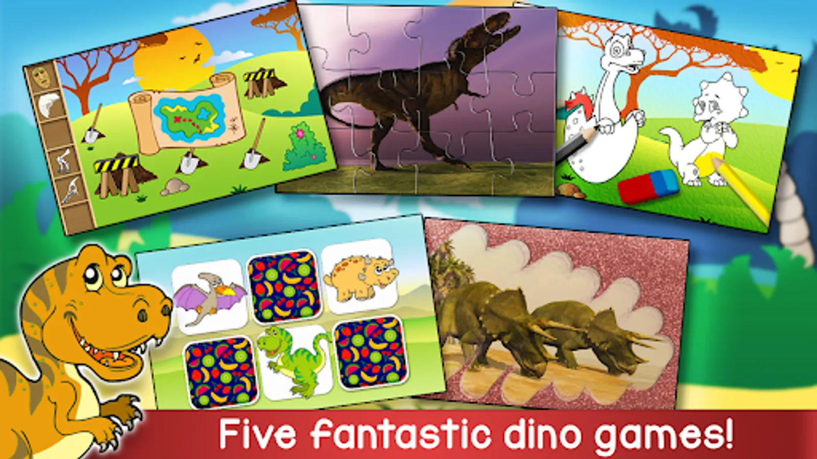 FIVE fun and exciting games with lots of dinosaurs for all the dino lovers out there!