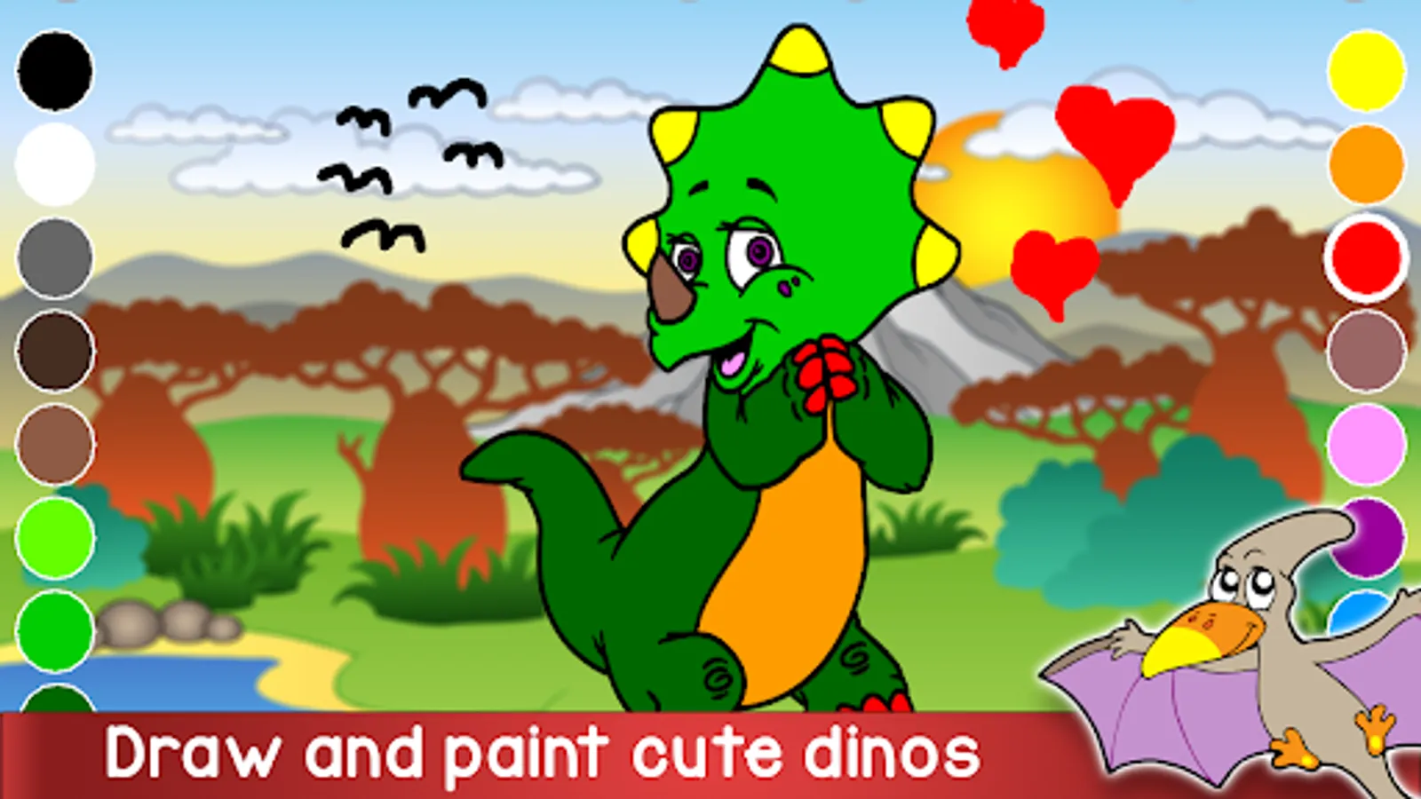 This is a simple yet fun drawing app for kids. Color lots of cute dinosaurs, have fun creating your own doodles in free draw mode, and laugh at the wacky color combinations created by the random button!