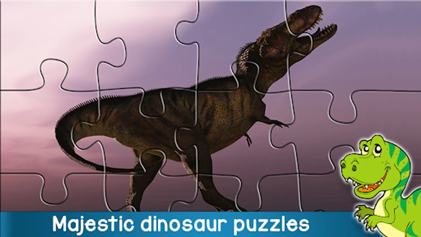 In this intuitive puzzle game for kids and adults you can choose whether to use 6, 9, 12, 16, 30 or 56 pieces, adjusting the difficulty to the appropriate skill level. Great for relaxation and hand-eye coordination. If you or your kids like dinosaur games and jigsaw puzzles, they will LOVE this puzzle filled with cool dino pictures!