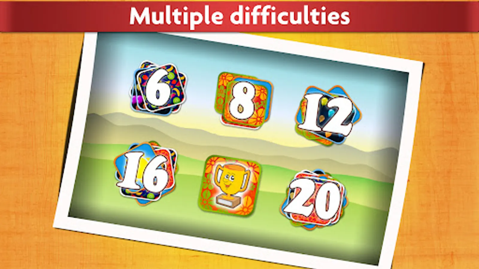 - 5 different difficulties (6, 8, 12, 16 and 20 cards)