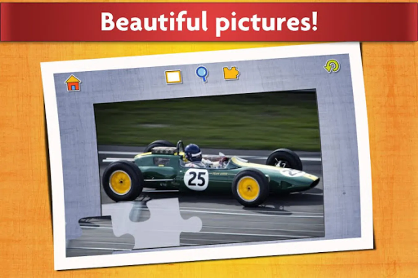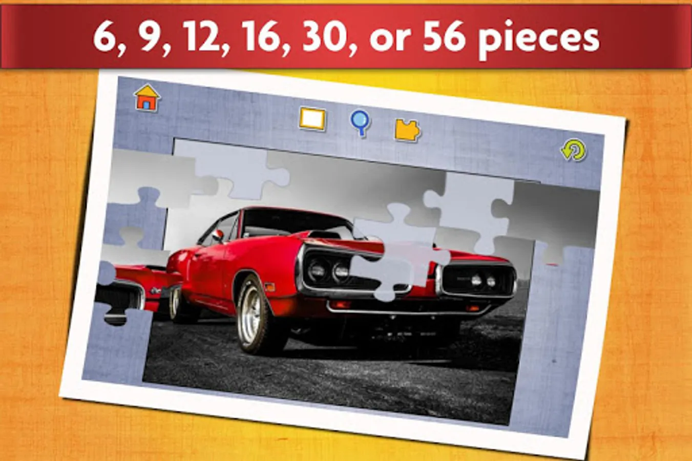 This free car game works like a real jigsaw puzzle for kids and adults. When you select a piece it stays on the board even if you place it incorrectly, and you can move the piece until it slides to the correct place. Your progress is automatically saved so you can take a break whenever you want.