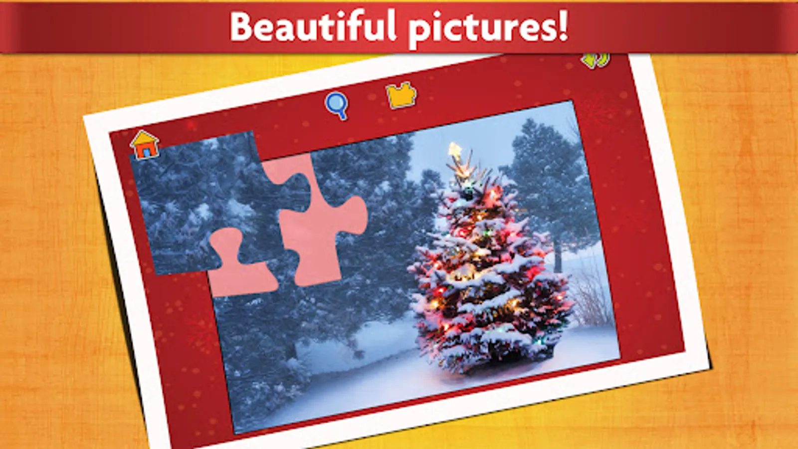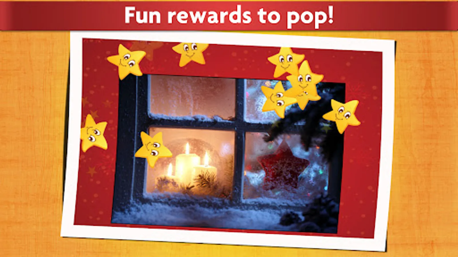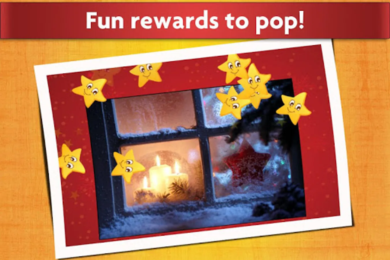 These relaxing puzzles feature beautiful pictures and a fun reward when the image is completed. The Christmas puzzles include Santa Claus riding with Rudolph the reindeer, Frosty the Snowman, Christmas candy and gingerbread cookies, and other festive winter and xmas holiday scenes, while the rewards include balloons, fruits, snowflakes and many more surprises!