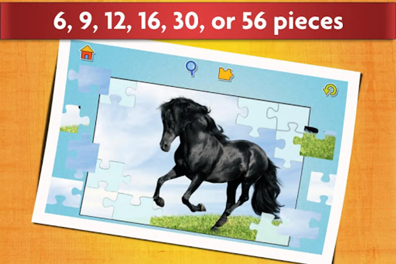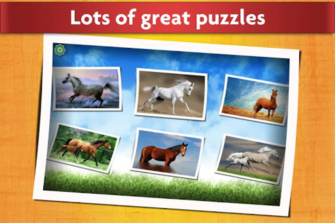 These relaxing puzzles feature beautiful pictures and a fun reward when the image is completed. The horse puzzles include elegant stallions, cute ponies, wild horses and more, while the rewards include balloons, fruits, snowflakes and many more surprises!