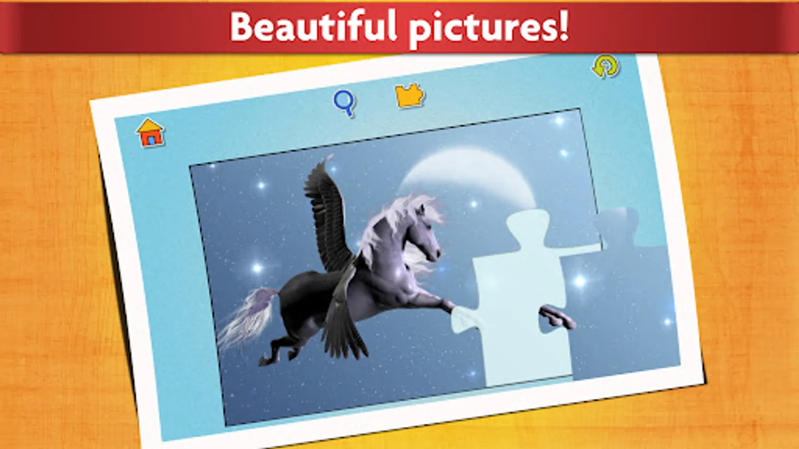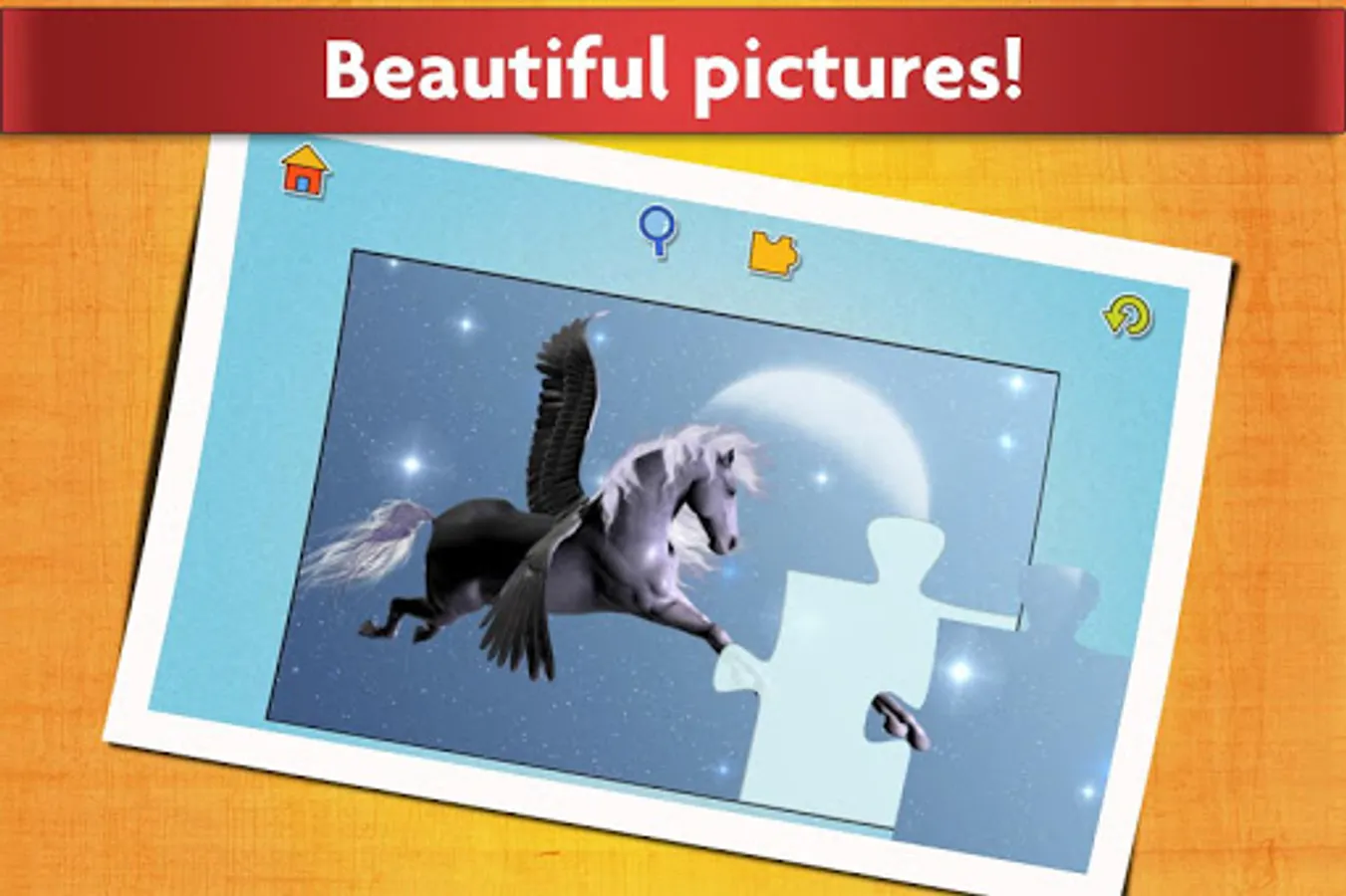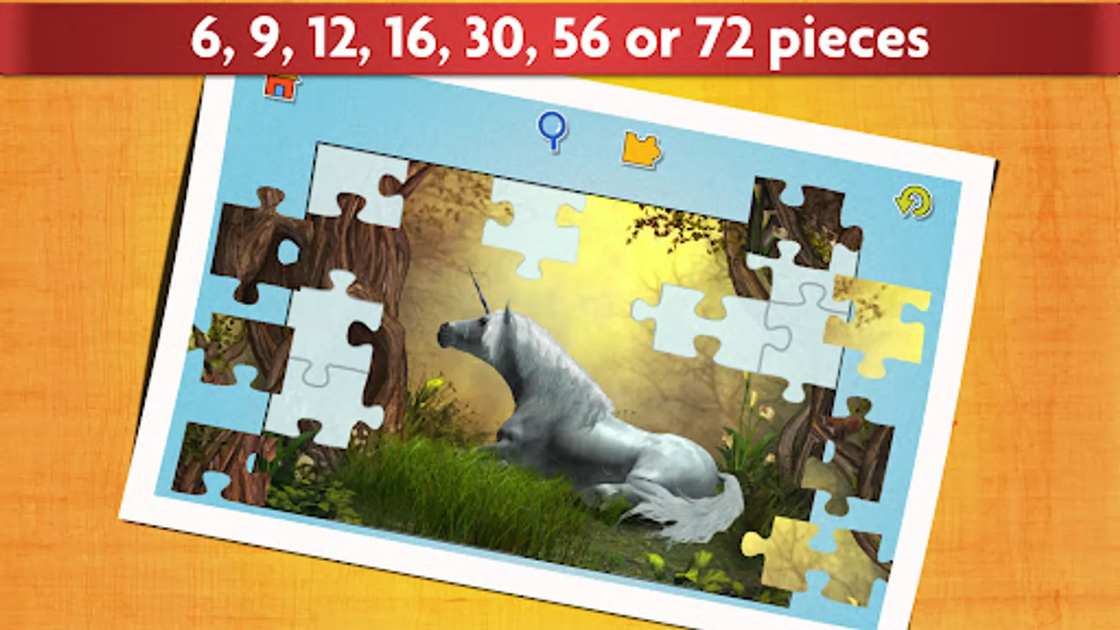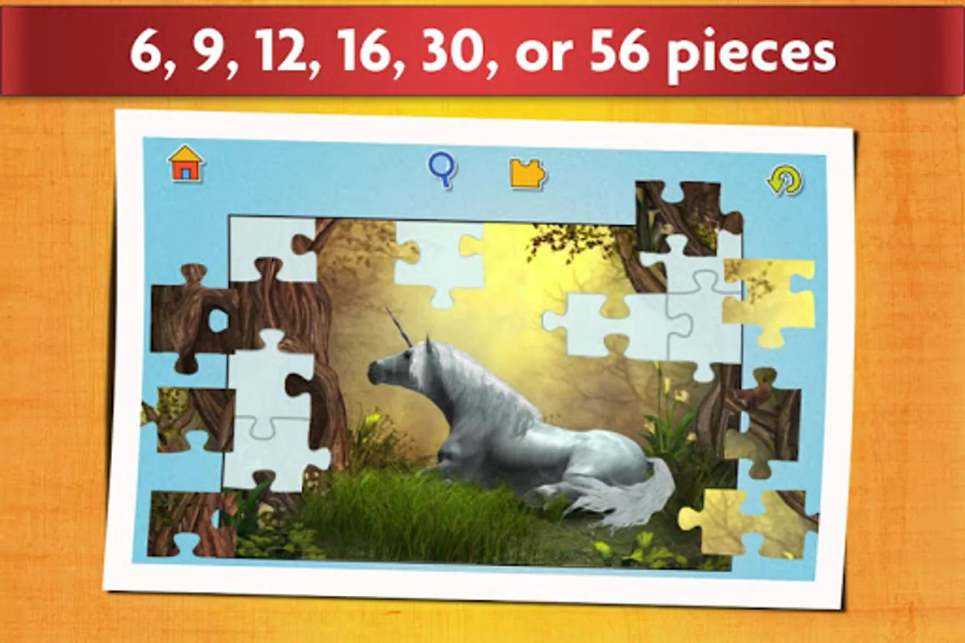 In this offline game with magical unicorns you can also choose whether to use 6, 9, 12, 16, 30, 56 or 72 pieces to adjust the difficulty depending on age and skill.