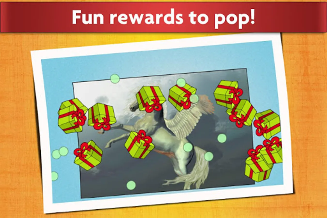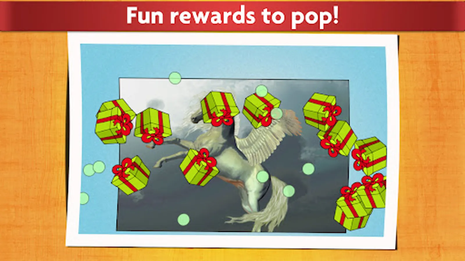 These relaxing puzzles feature beautiful pictures and a fun reward when the image is completed. The unicorn puzzles include beautiful unicorns and pegasus, while the rewards include balloons, fruits, snowflakes and many more surprises!