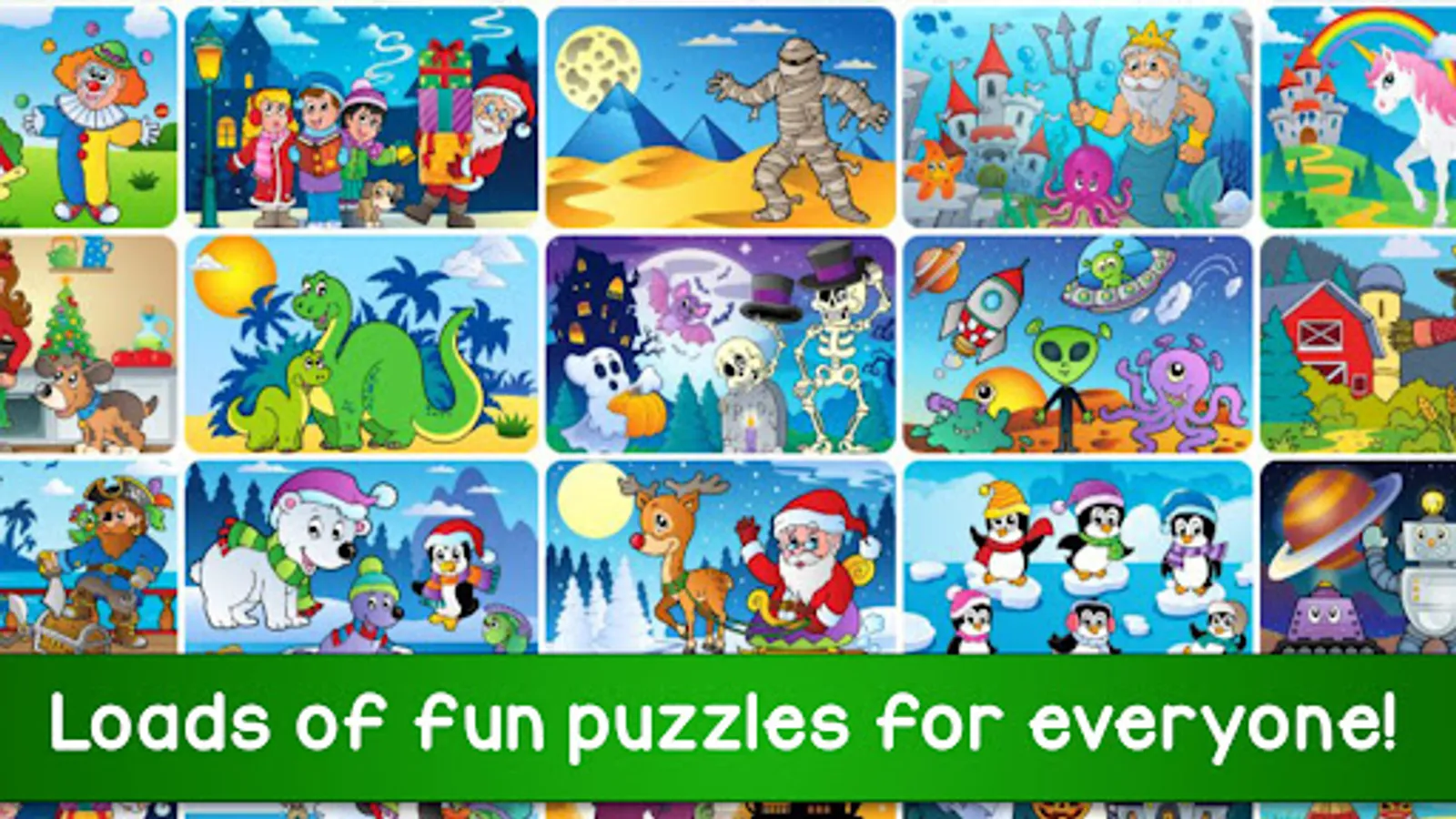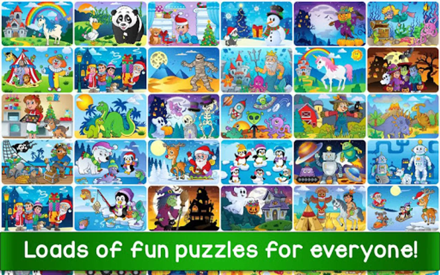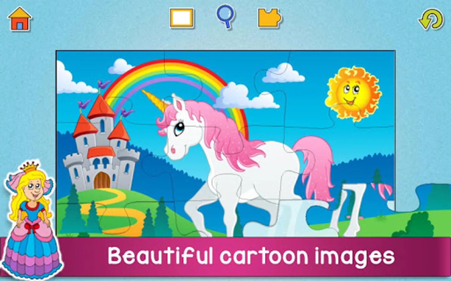 These relaxing puzzles feature beautiful pictures and a fun reward when the image is completed. The kids puzzles include unicorns, dragons, dinosaurs and other fun scenes, while the rewards include balloons, fruits, snowflakes and many more surprises!