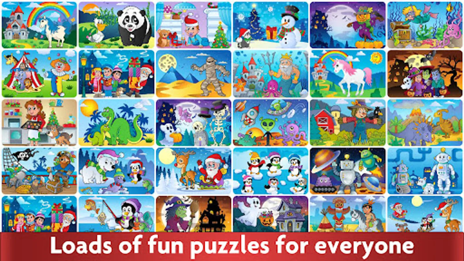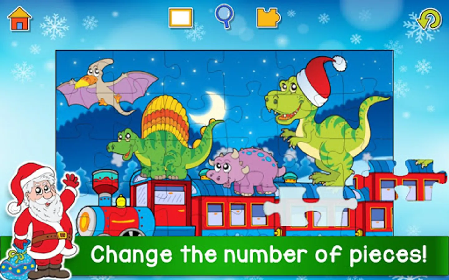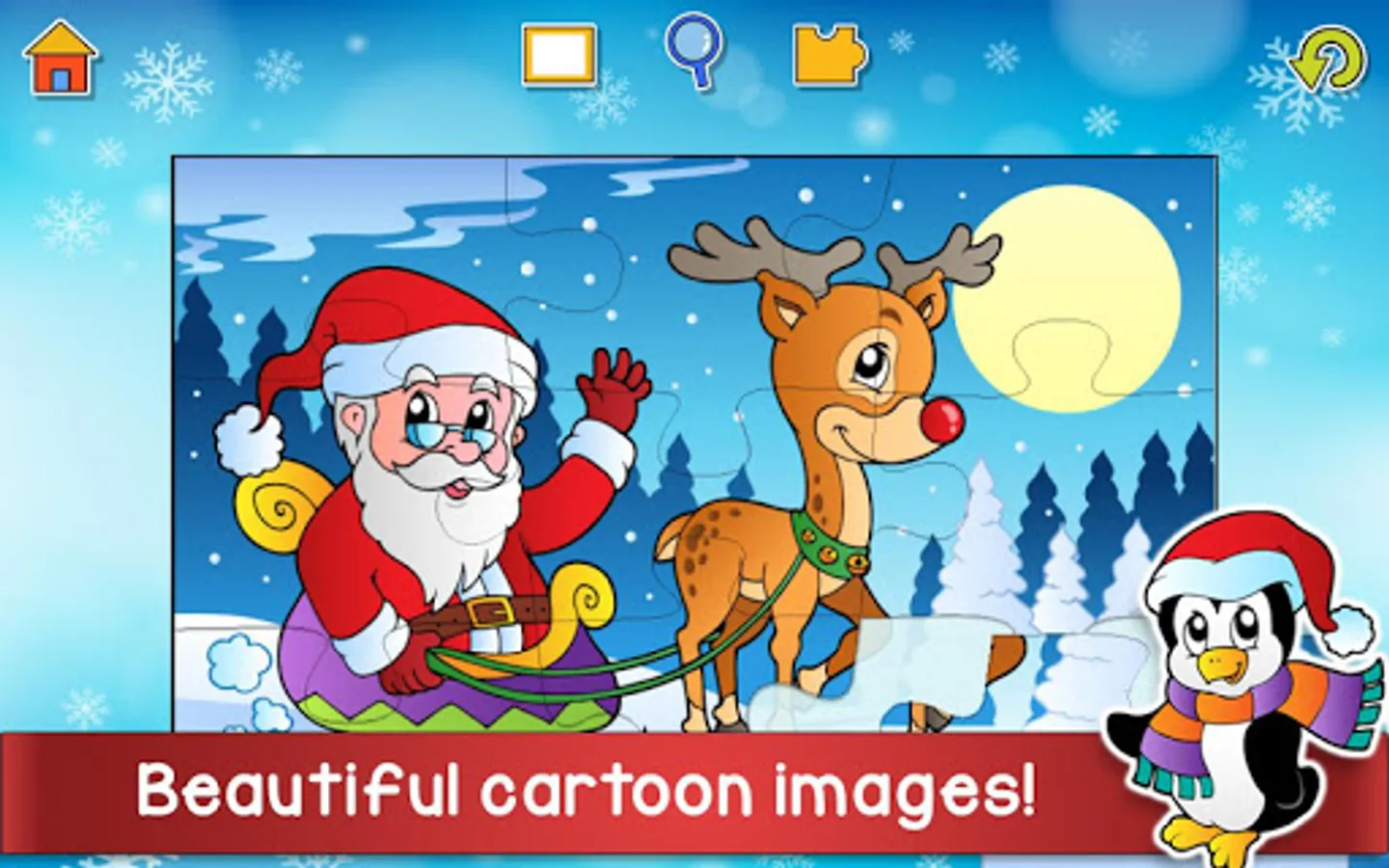 These relaxing puzzles feature beautiful pictures and a fun reward when the image is completed. The Christmas puzzles include Santa Claus riding with Rudolph the reindeer, Frosty the Snowman, Christmas candy and gingerbread cookies, and other festive winter and xmas holiday scenes, while the rewards include balloons, fruits, snowflakes and many more surprises!