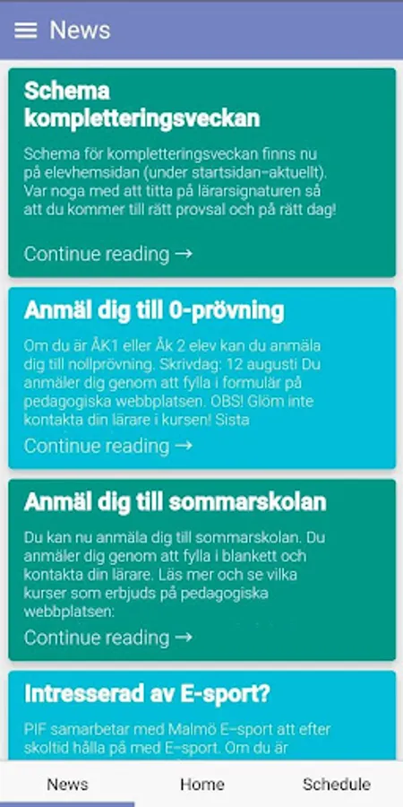 Ta del av aktuella nyheter och händelser på skolan, såväl som schema och matsedel. Nu behöver du inte längre gå till receptionen och fråga eller leta reda på en fungerande info-skärm, utan får samma info snabbt och lätt genom PauliAppen.
