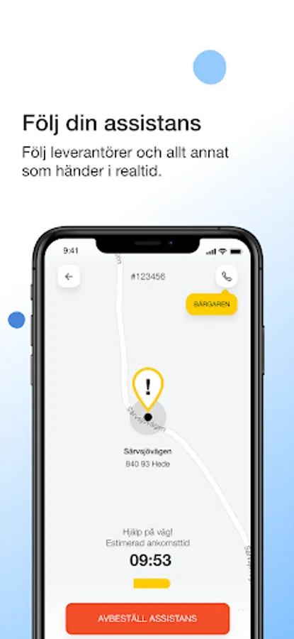 When you need assistance, the nearest tow truck and other relevant providers are alerted immediately as soon as you press the button in the app. You follow everything in real time and communicate with your AssistMe team and suppliers directly through the app.