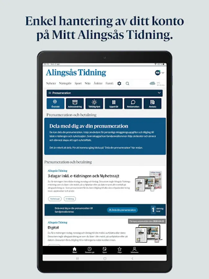 It is completely free to download the Alingsås Tidnings app.