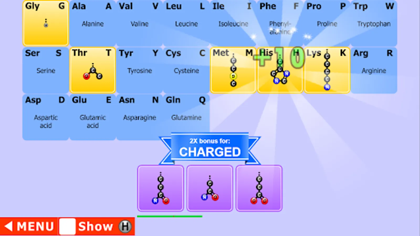 There are many excellent videos and texts on amino acids, but they cannot offer the LEARNING-BY-DOING and the STIMULATING CHALLENGE of this game!