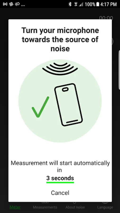 Measuring noise with the noise exposure app will give you a good indication of the noise levels around you – for example at your workplace. Due to the limitations of the phone, the app does not fulfil European or international standards for sound level meters.