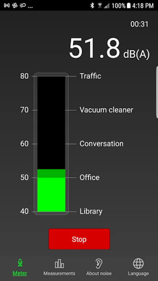 If your measurement shows that the sound levels are too high, we recommend you proceed by doing more accurate measurements with professional equipment. Android phones generally measure sounds well between 40 dB(A) and 80 dB(A). But the microphones can differ in quality. Always use a professional sound level meter if you want accurate results.