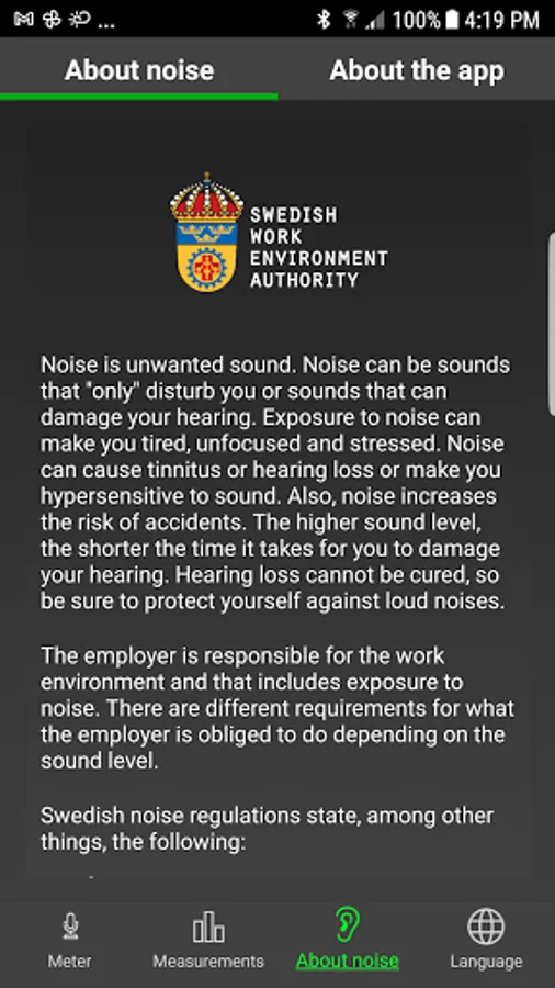 The Noise Exposure App is published by The Swedish Work Environment Authority (Arbetsmiljöverket)