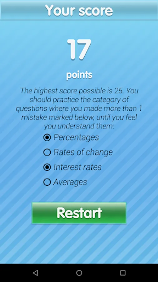 To understand economy, you need to know basic math. You must master elementary arithmetic, but also everyday economy using percentages, interest rates, and averages. You can check if your maths knowledge is sufficient with these 16 questions. The app will tell you how you performed, and which areas to train should you not get a perfect score. Good luck!