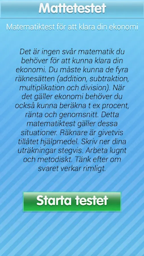 To understand your personal finance needs to be basic math. You must master the four operations but also everyday economy with percentage, rate and average. You can easily see if your math skills are sufficient by Matt app test with less than 10 calculations. You know how you have overcome you and also the right solution if you have done something wrong. Good luck!