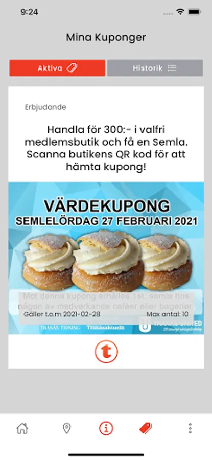 Think about the environment, avoid paper coupons and download the coupons digitally directly in the Tranås app instead.