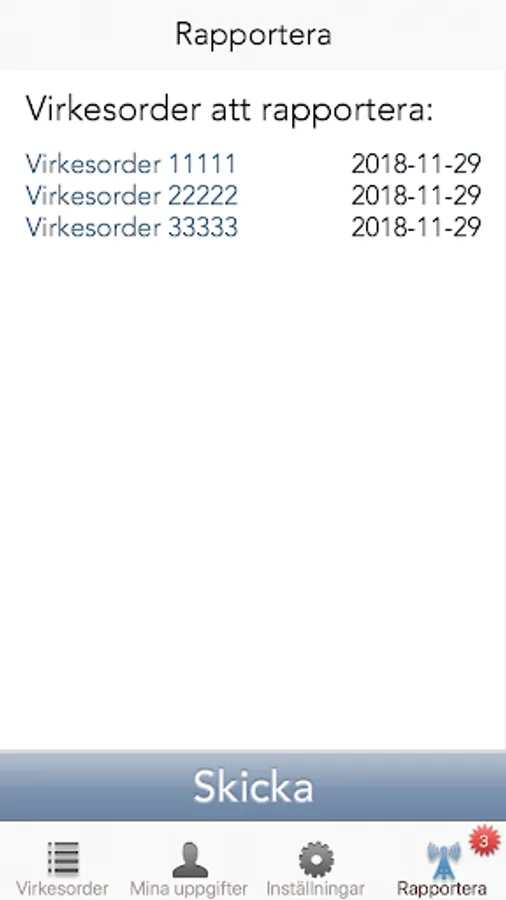 An inventory of road storage inventory. You must have received user information from Ingarps Wood Products to use the app.
