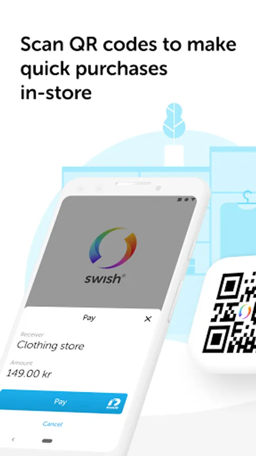 Swish allows you to send money to friends, companies and organizations using your mobile phone. It’s perfect for splitting a check at a restaurant, paying for a bargain at a flea market or for sending a gift to charity. You can also pay with Swish when shopping online or in mobile apps from companies offering Swish as a payment option. The money is sent directly into the recipient’s account, no matter which one of the participant banks they have. You can also scan a QR code in order to initiate a payment.