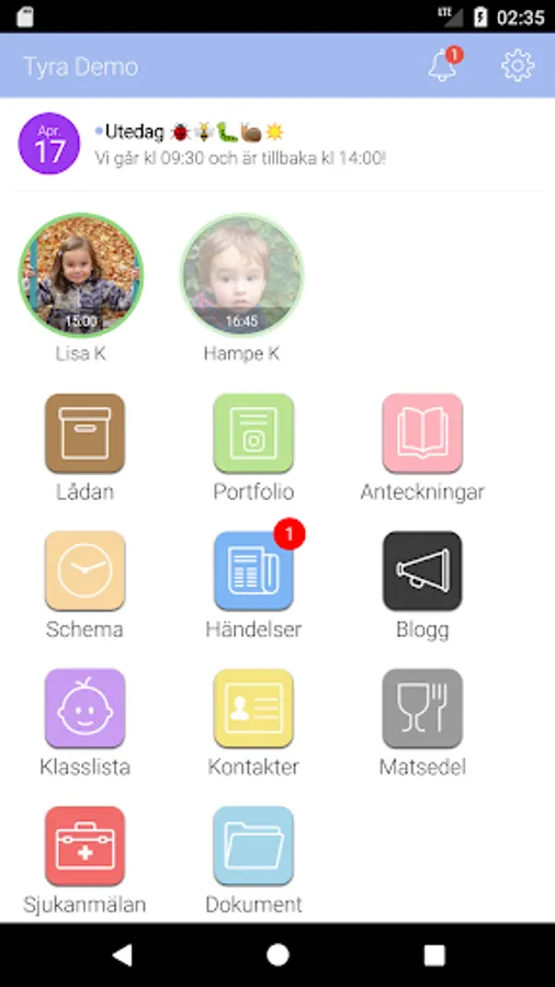 With Tyra, you can easily keep track of your child's development and learning and also see what they are doing during the day.