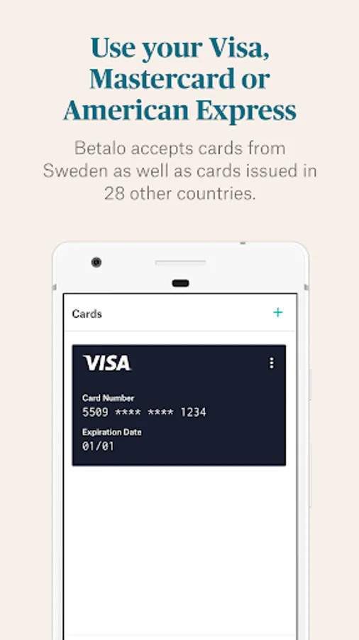 Betalo Accepts All Visa, MasterCard and American Express Cards.
