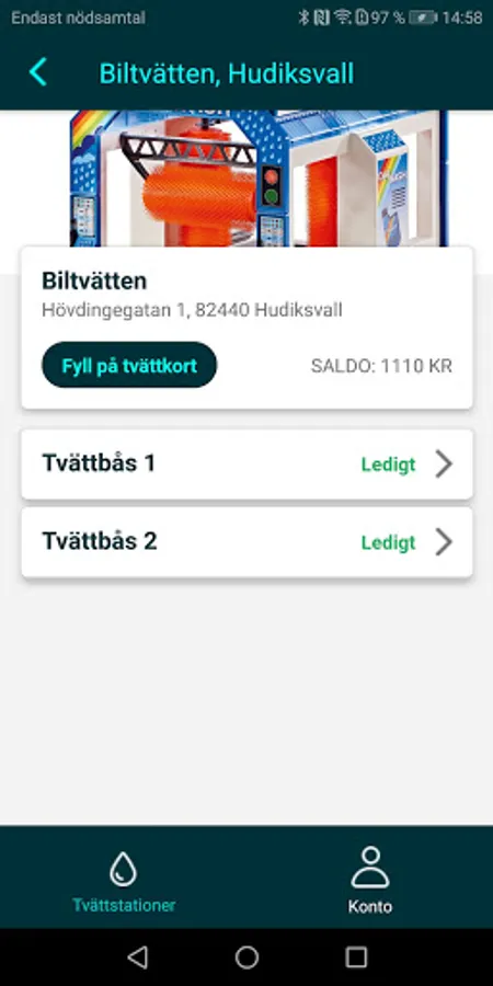 In the Car Wash app, you can buy and book your Car Wash directly on your mobile.