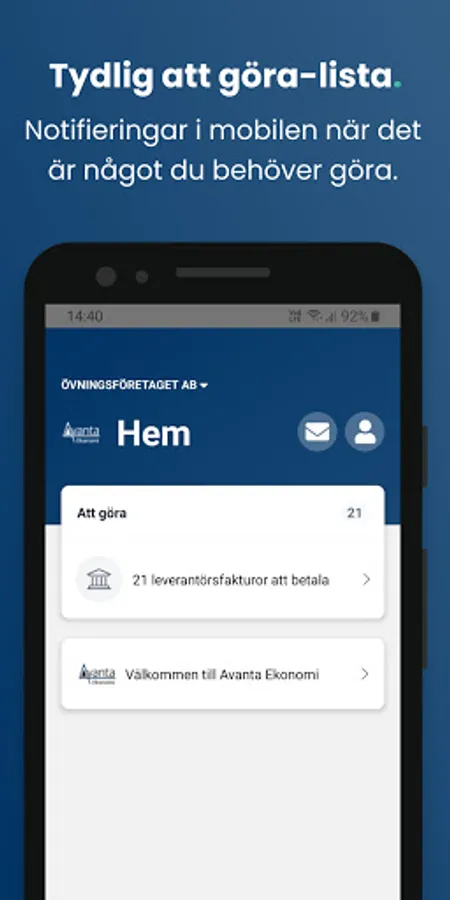 With the Avanta app, you never miss an important financial event. Thanks to push notifications, you will always be up to date on what is happening in the company's financial flows.