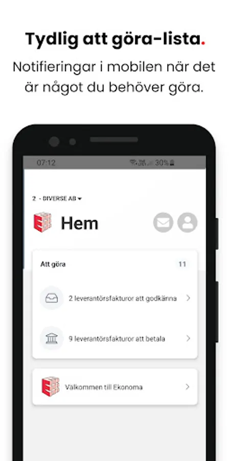 In the app, you can upload your supplier invoices directly, and you can also approve and pay them directly on your mobile with a bank connection.